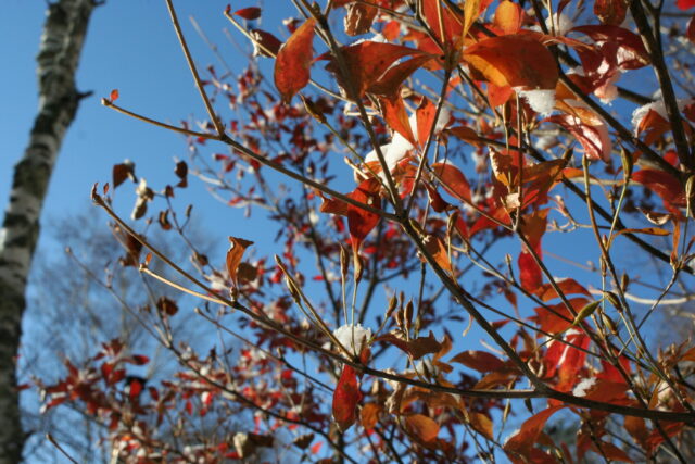 今年はモミジやカエデはあまり紅くならないうちに散ってしまったけど、ヤマツツジは頑張ってる。